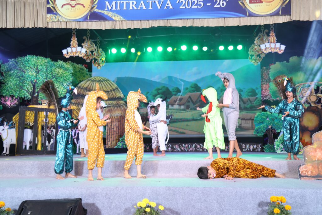 The Annual Day Celebration of the Lower Primary section at Mitra Academy, held on 12th and 13th December 2025, was truly a feast for the senses and a heartwarming celebration. The program commenced on an auspicious note with an invocation and lamp lighting, setting the tone for an evening where every moment sparkled with meaning. The Welcome Address and Annual Report were followed by the theme-based presentation “ZEST – The Joy of Life,” which unfolded the inspiring story of a kind-hearted young girl and her magical paintbrush. Through vibrant dances and expressive performances, students beautifully conveyed the message that kindness and compassion go a long way and are life’s greatest riches. The celebration concluded with a vote of thanks followed by the National Anthem, bringing the curtain down on an event that truly reaffirmed that joy shared is joy doubled.