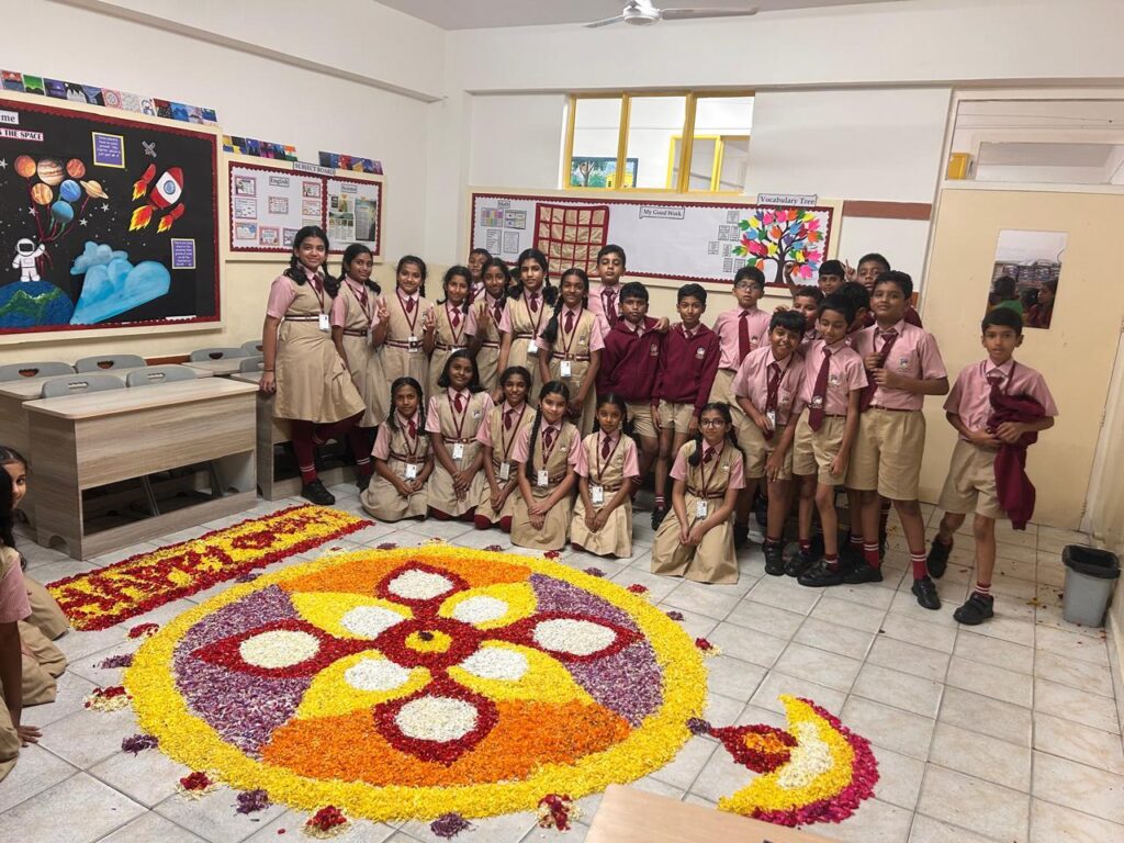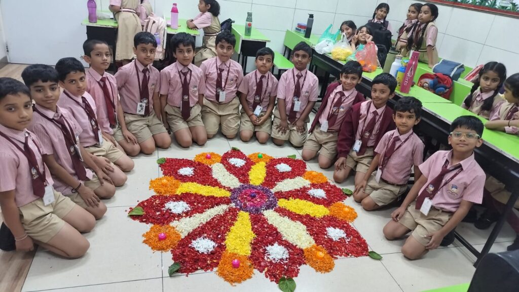 As part of the Onam celebrations, an ‘Athapookkalam’ making competition was held on Wednesday, September 3, for the Upper Primary Section. The students enthusiastically arranged their classrooms and, with guidance from their teachers, created vibrant floral designs. Working in groups, they meticulously prepared petals and beautifully decorated the floor with colourful patterns. The students also visited neighbouring classes to admire each other’s creations. The ‘Pookkalams’ were judged on organization, colour combination, design and presentation, making the celebration both festive and memorable.