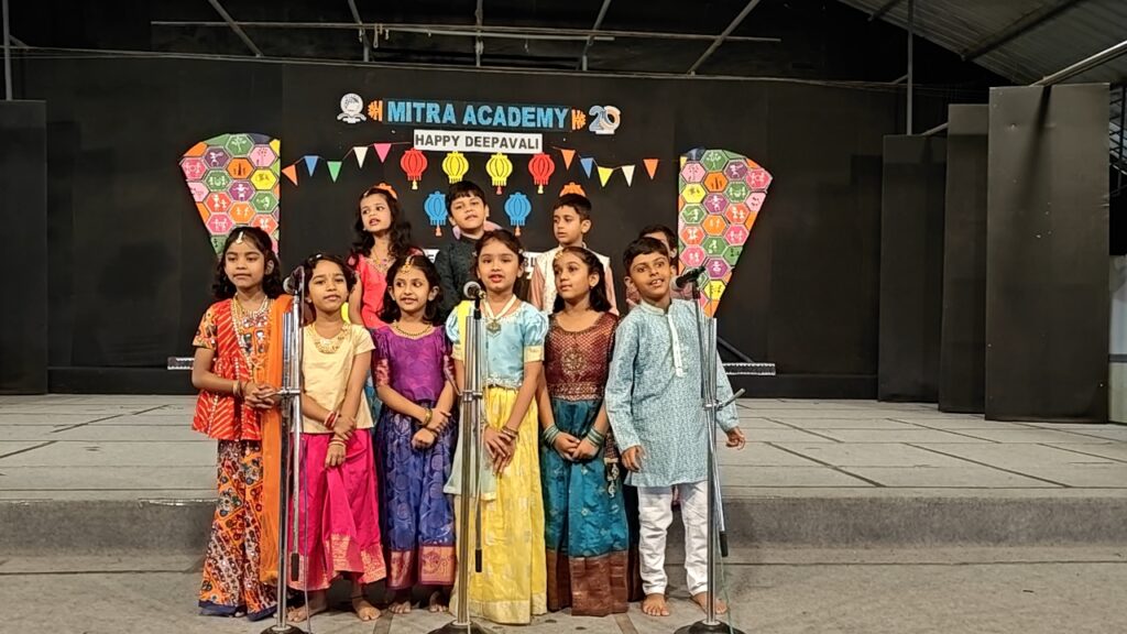 The Diwali Assembly was conducted by the students of Lower Primary section on Thursday, October 16, 2025. The assembly began with the School Hymn, followed by a Thought for the day and interesting facts about the festival. Students shared the significance of Diwali as the victory of light over darkness and good over evil. The celebration included lively dance and song performances and a teacher’s talk highlighting the importance of spreading joy and positivity. The assembly concluded with the National Anthem.