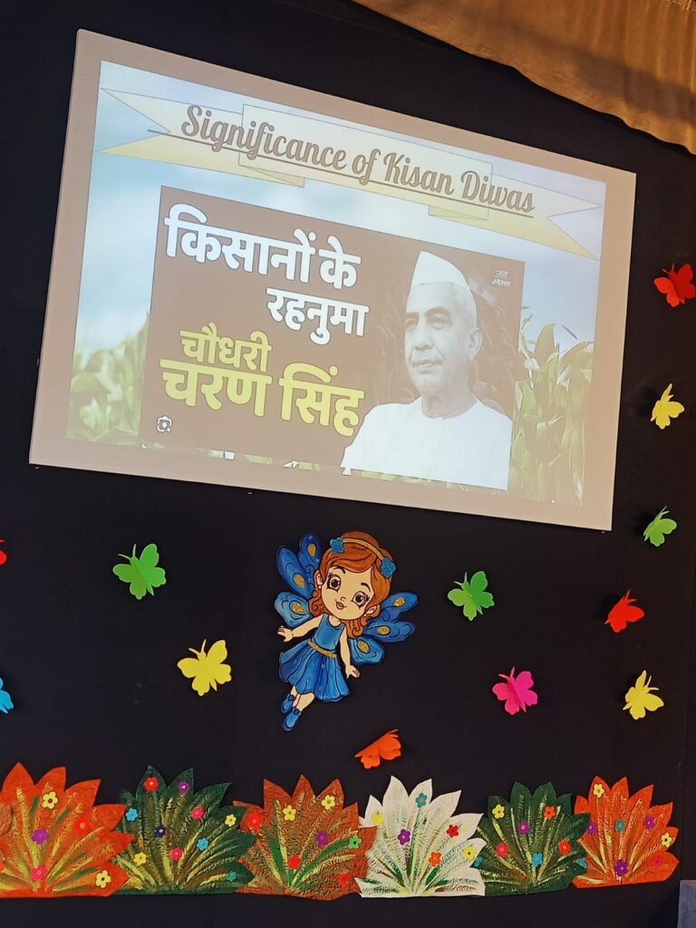 The students of Std. VI E of Mitra Academy conducted a special assembly on Kisaan Diwas to honour the birth anniversary of Choudhary Charan Singh, the 5th Prime Minister of India, who is remembered for his exemplary contributions towards advocating and securing farmers’ rights. The assembly featured a student talk, a poem, a dance, and a song highlighting the dedication and hard work of farmers. The assembly was informative, meaningful, and enriching for all the students.