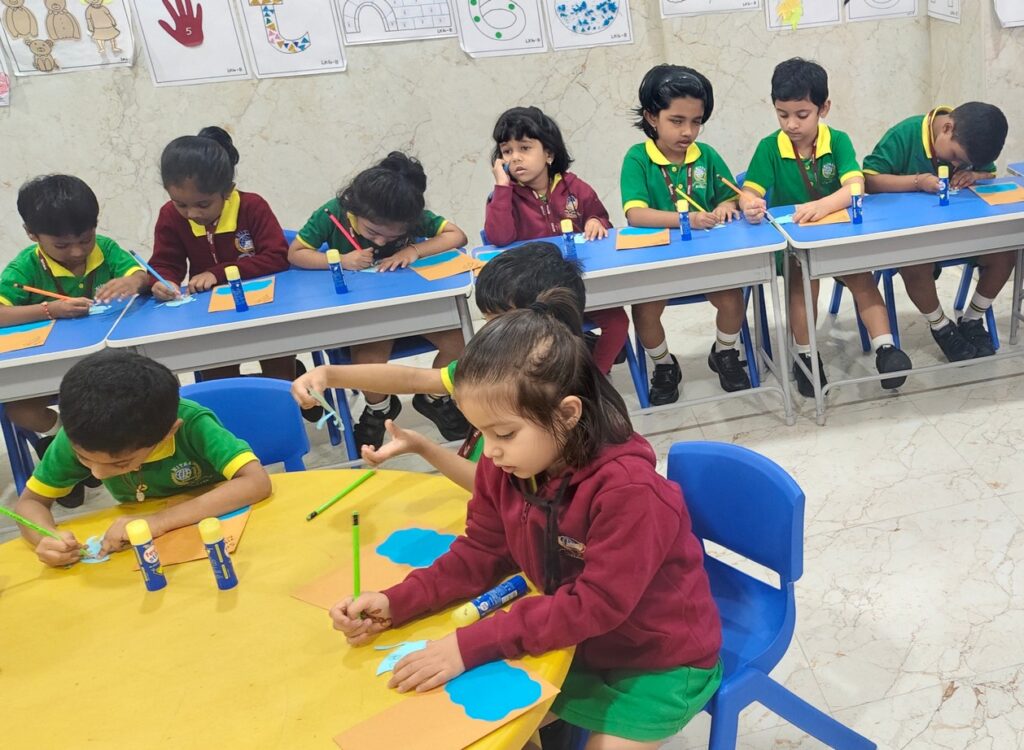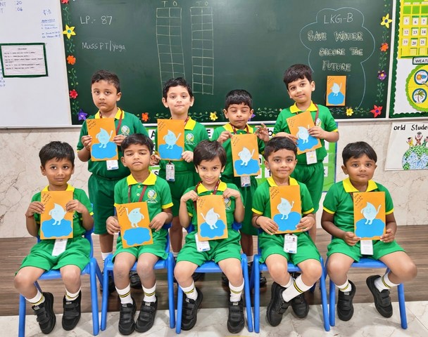 The Save Water, Secure the Future Activity was conducted to help children understand the importance of water conservation through a fun and creative craft. Teachers began by explaining the water cycle, its stages of evaporation, condensation, precipitation, and collection and discussed how every drop of water is precious. Each child received a pre-cut blue water droplet, a yellow base card and hand & leg cutouts. Guided step-by-step by their teachers, the children assembled their cheerful water droplets, adding eyes and smiles with crayons to bring their creations to life. The completed craft served as a delightful takeaway, reminding children to value and conserve water for a better future.