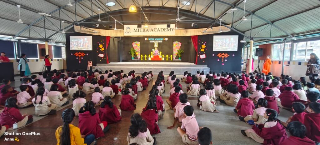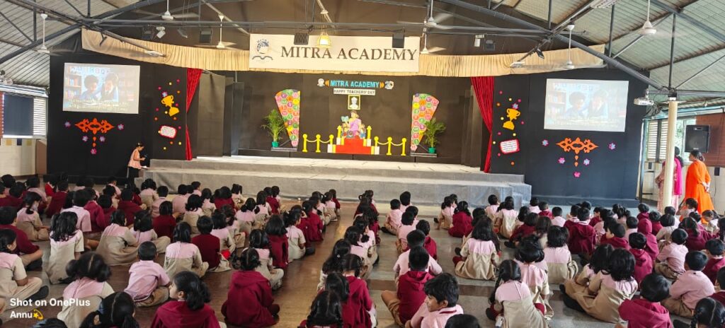 Teachers’ Day was celebrated with great enthusiasm at Mitra Academy on Thursday, September 04, 2025, in the ARA Hall. The assembly began with the School Hymn, and Thought for the Day, followed by students presenting Amazing Facts about Teachers’ Day. Students enthusiastically participated in the programme. A Std II student delivered a speech highlighting the significance of Teachers’ Day and the contributions of Dr. Sarvepalli Radhakrishnan, whose birthday is observed on September 5th. A short skit, “A Day Without a Teacher,” emphasised the importance of teachers in guiding students’ lives. The cultural program included a vibrant dance performance, a melodious Teachers’ Day song and an inspiring talk by Ms. Rashmi K. The celebration concluded with the National Anthem, leaving students with a deep sense of respect and gratitude towards their teachers. The assembly created a warm and joyful atmosphere, leaving lasting memories in the hearts of both teachers and students.