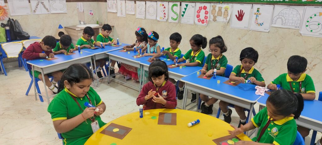 The Traffic Light Craft Activity for LKG children was conducted under the supervision of class teachers, reinforcing road safety awareness through hands-on learning. After a brief introduction on the importance of traffic lights and their meanings children observed a sample craft. With step-by-step guidance, they assembled the lights in sequence, attached them to the pole and decorated their traffic signals using crayons. The completed craft was sent home as a takeaway, allowing children to proudly share their work. The activity strengthened fine motor skills, creativity and understanding of basic transportation concepts.