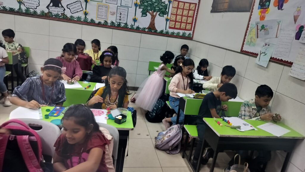 Students of Classes III and IV explored their artistic side through a vibrant Vegetable Printing Activity on the occasion of Children’s Day, held on Friday, November 14, 2025. Bringing pre-cut vegetables such as carrots, onions, capsicum, and ladyfinger, the children dipped them in colours provided by the teachers and created beautiful and imaginative artwork. Their colourful prints filled the classrooms with creativity and excitement. The activity not only made Children’s Day enjoyable but also encouraged creativity and teamwork. It was truly a memorable celebration filled with fun, learning and laughter.