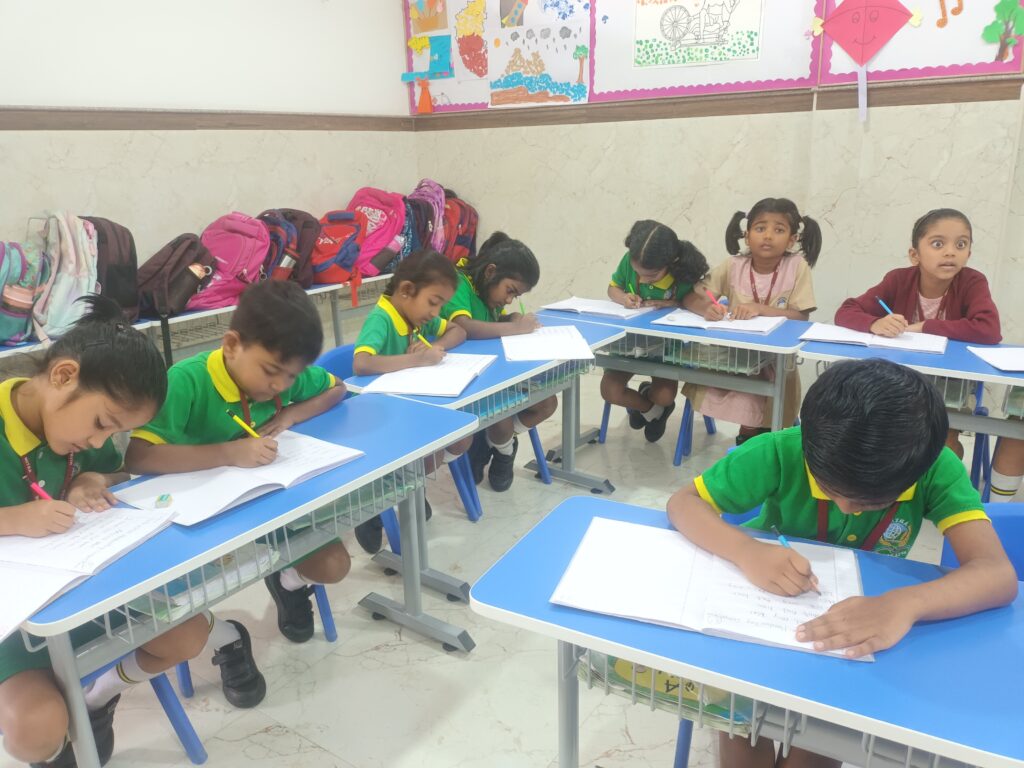 The Handwriting Competition was conducted to encourage neatness, legibility and presentation in writing. During the activity, children wrote sentences from the board onto worksheets, following instructions carefully. Their work was evaluated based on legibility, spacing, neatness and overall presentation. The competition promoted patience, concentration and pride in writing, with enthusiastic participation from all children.